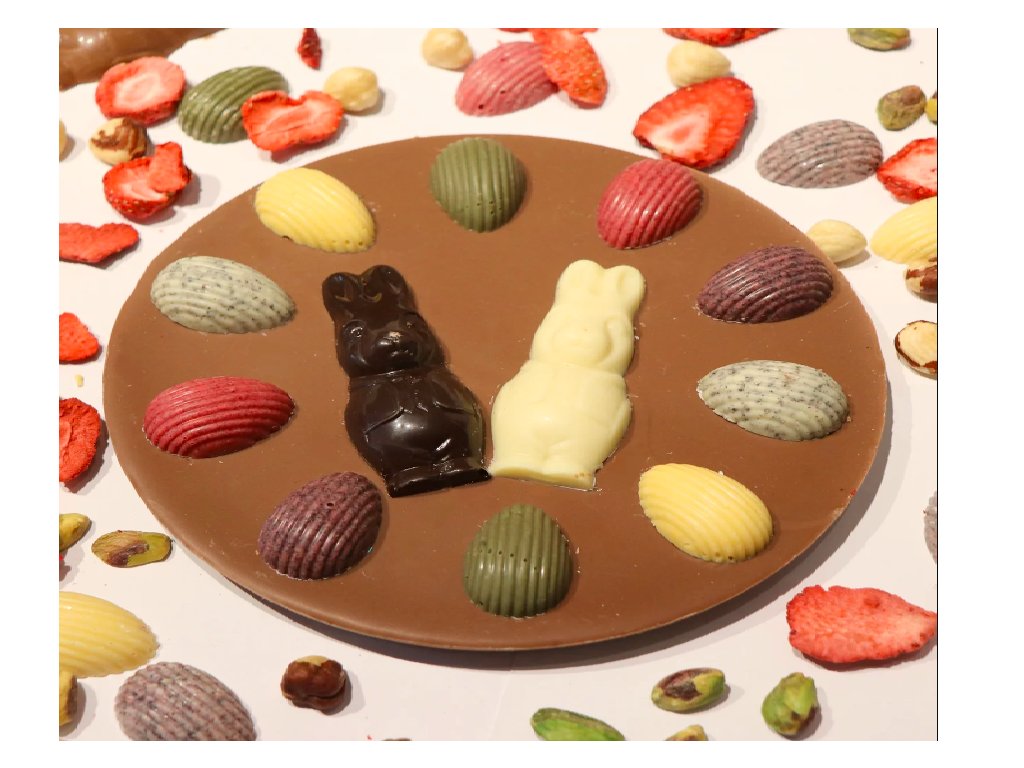 - Vajíčka: Cukr, kakaové máslo, sušené mléko plnotučné, lyofilizované jahody, lyofilizované mango, lyofilizovaný černý rybíz, mák, matcha, emulgátor: sójový lecitin, přírodní výtažek z vanilky.